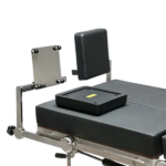 The foot support can be adjusted along the operating table to support patients of different lengths.
